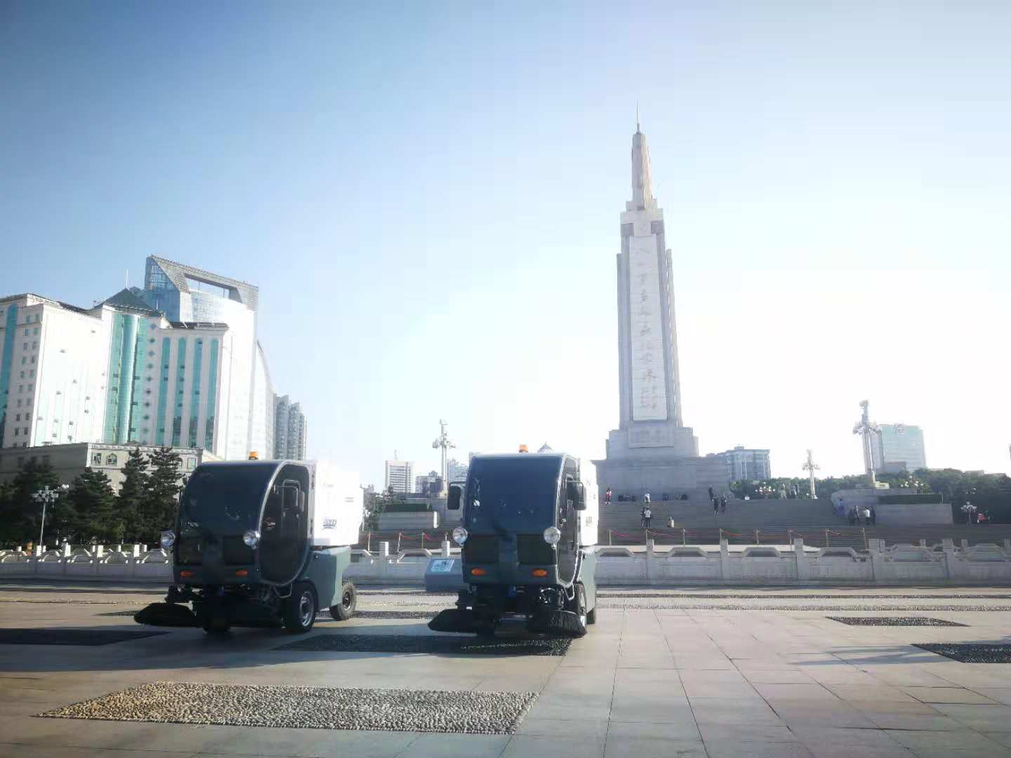 新能源環(huán)衛(wèi)電動清掃車在八一廣場作業(yè)圖: