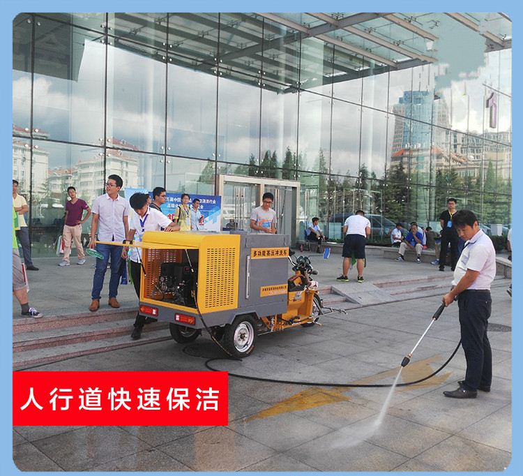 翰邦三輪沖洗車是一款多功能的沖洗車,在市面上有多種名稱,許多客戶會根據(jù)不同的功能有不同叫法,有稱為高壓沖洗車的,這種情況多半是根據(jù)其原理而獲得,高壓沖洗車利用高壓水射流技術(shù),通過美國百力通發(fā)動機使壓力達到280公斤,從而達到清洗清理的功能;有稱之為小型道路沖洗車,這種是因為很多客戶用作市政道路、人行道、慢車道、道路欄桿、橋梁欄桿的清洗;還有一些稱之為高壓水掃車的用戶看,多半是因為高壓水掃車可當做掃地車的用途,用以路面垃圾的收集清理等;還稱之為多功能高壓沖洗車的就是對以上功能的總結(jié),很多時候多功能高壓沖洗車用于地面沖洗,垃圾桶污漬沖洗,小廣告清理,路面沖洗,路面水掃等等,都是比較適用的。